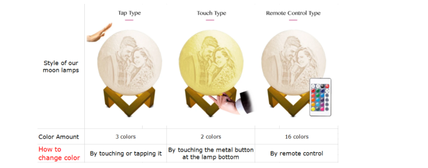 Please note: The 16-color Moon Lamp comes with remote control.